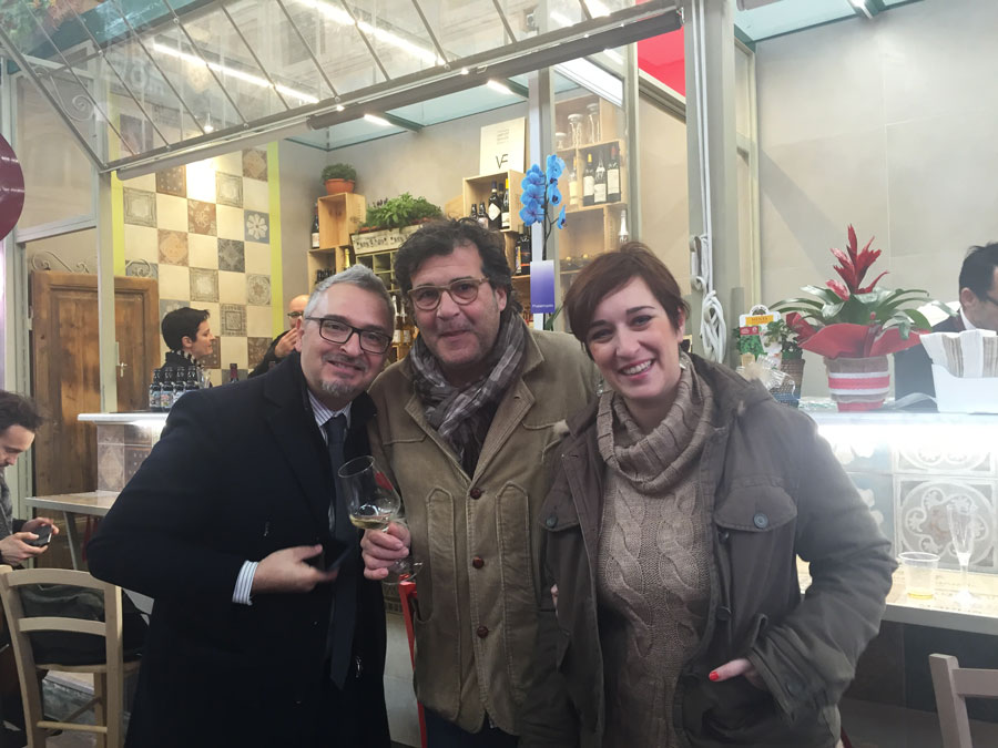 Davide Cecio, uno dei soci delle “Alle Vettovaglie”, insieme agli amici passati per l’inaugurazione, Fabio Cartei e Amelia De Franceschi